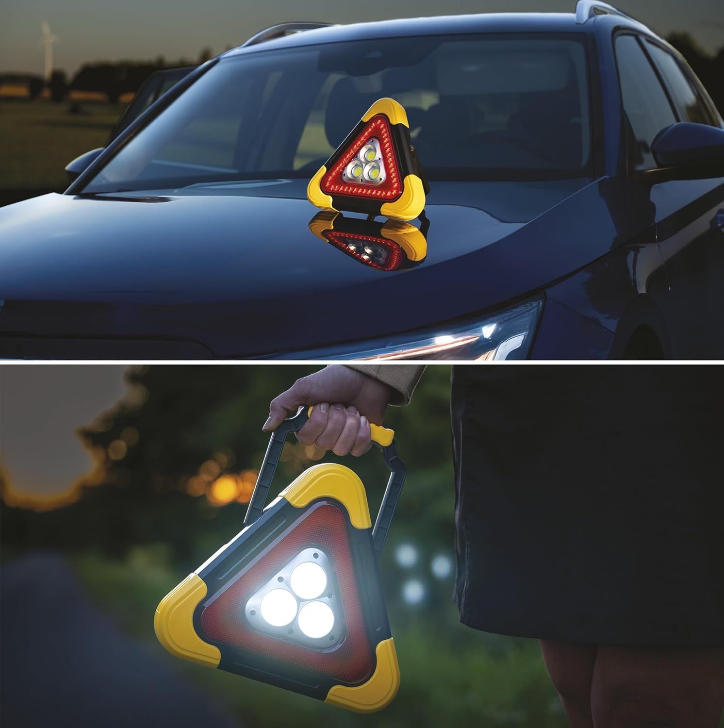 - Reliable emergency light: 5 light modes and shock-resistant ABS plastic make the rechargeable LED warning triangle a reliable helper in situations that require emergency lighting (car repair, car accident / car breakdown, camping, power failure)