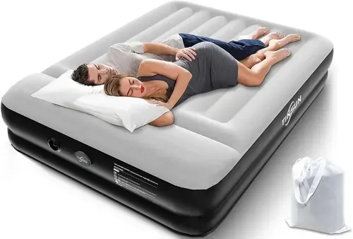 Queen Air Mattress with Built in Pump,Air Bed for Camping,Home&Guests,Fast&Easy Inflation Deflation Airbed,Double Blow up Bed,Travel Cushion (Black)