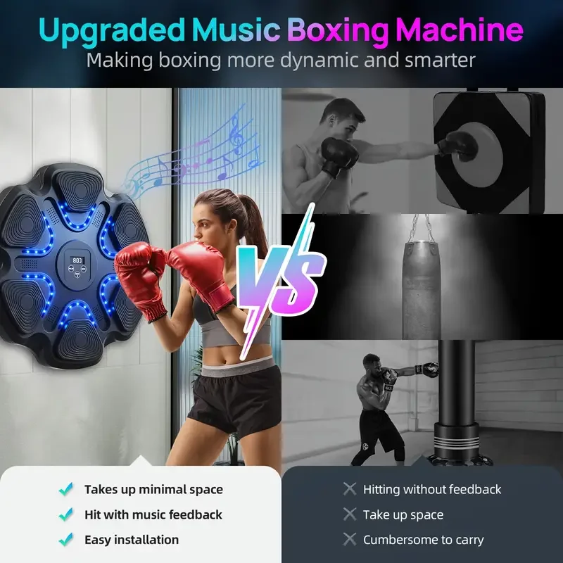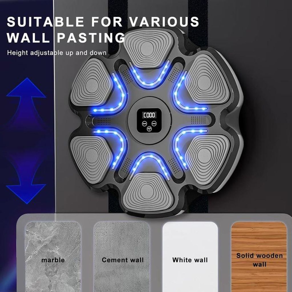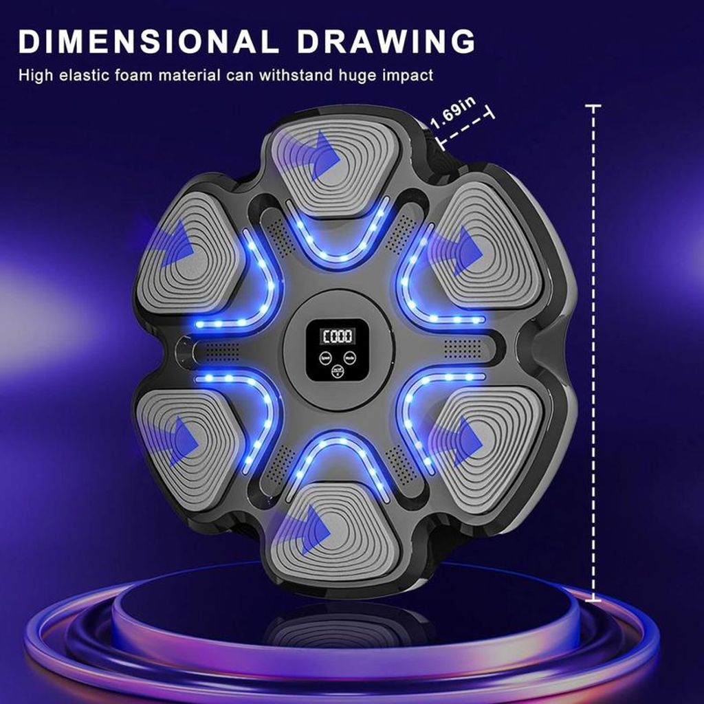 The intelligent musical boxing target is designed to enhance your overall fitness. It increases reaction speed, trains willpower, enhances physical fitness, burns fat, and provides a much-needed stress-relieving outlet.