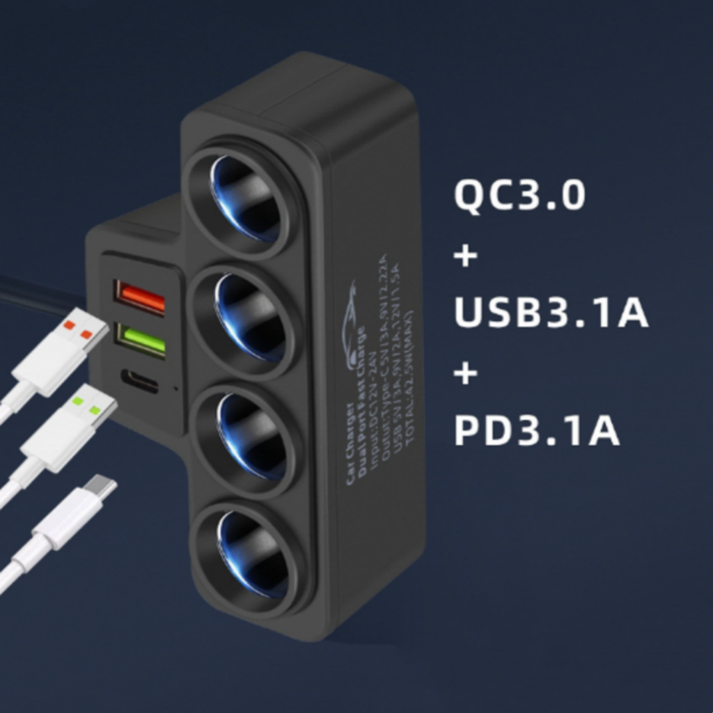 MASSIVE EXPANSION - Turns one socket into four 12V/24V sockets and three USB ports, allowing you to power up to seven devices simultaneously, eliminating charging queues on the road.
