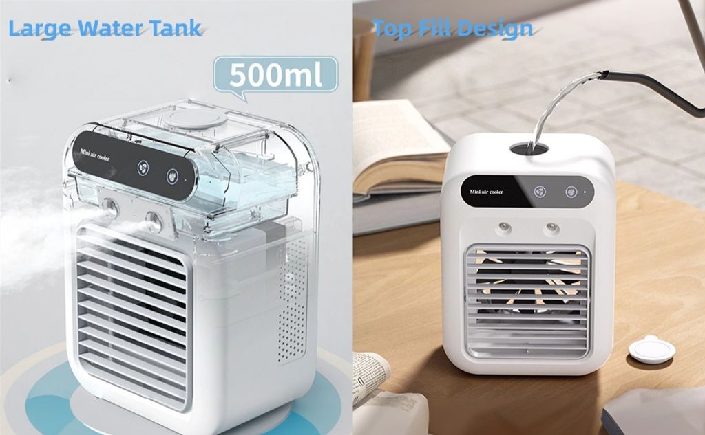 The Air Cooler Fan is powerful enough to effectively reduce the temperature of the surrounding environment, allowing you to feel a cool and comfortable summer. Equipped with a 16.9OZ (500 ml) large sealed water tank, for a better cooling effect, you can add an ice-water mixture to the water tank.