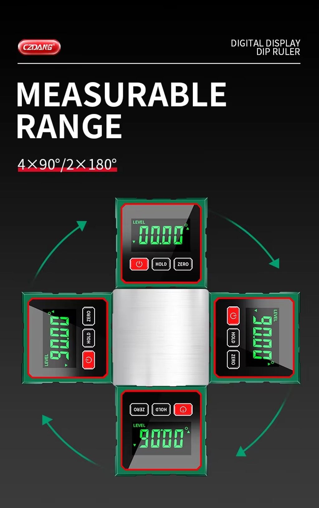 360° MAGNETIC ATTACHMENT – Built-in strong magnets on all four sides allow the tool to securely attach to metal surfaces, ensuring hands-free and stable measurements while measuring angles and reducing the risk of errors.