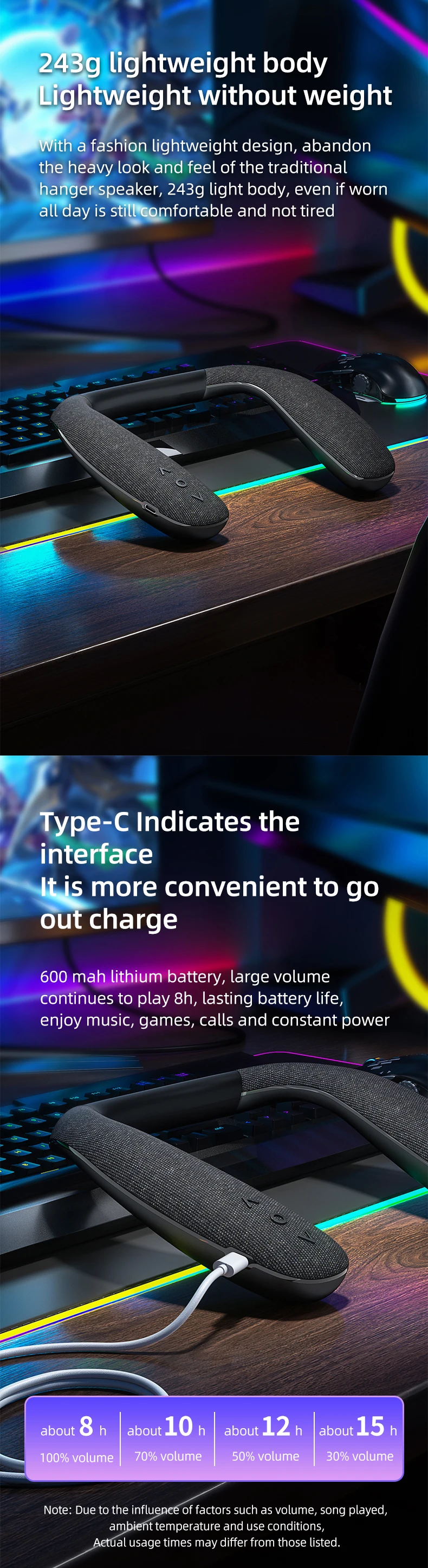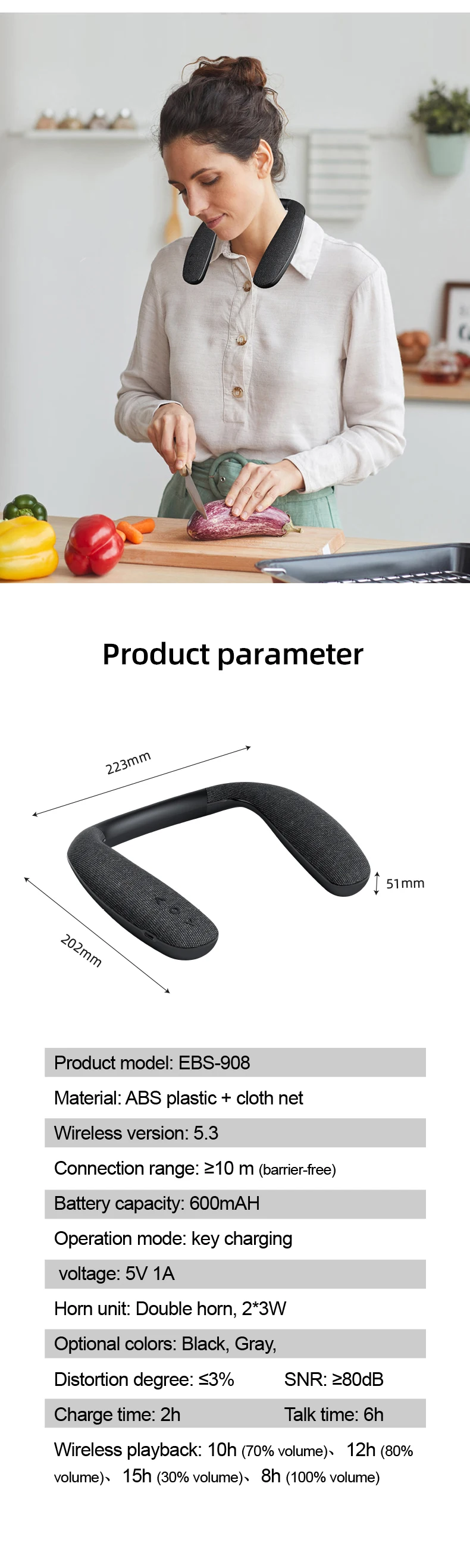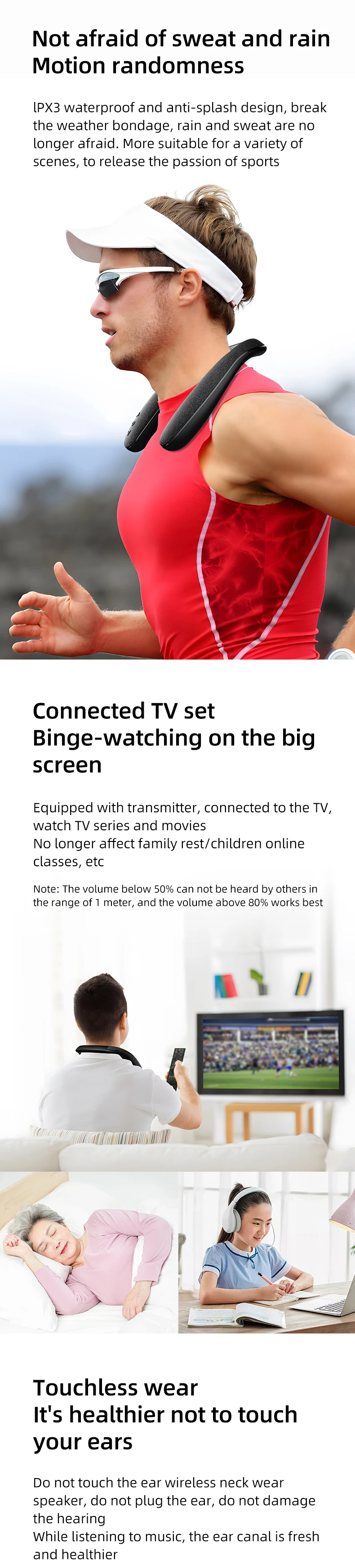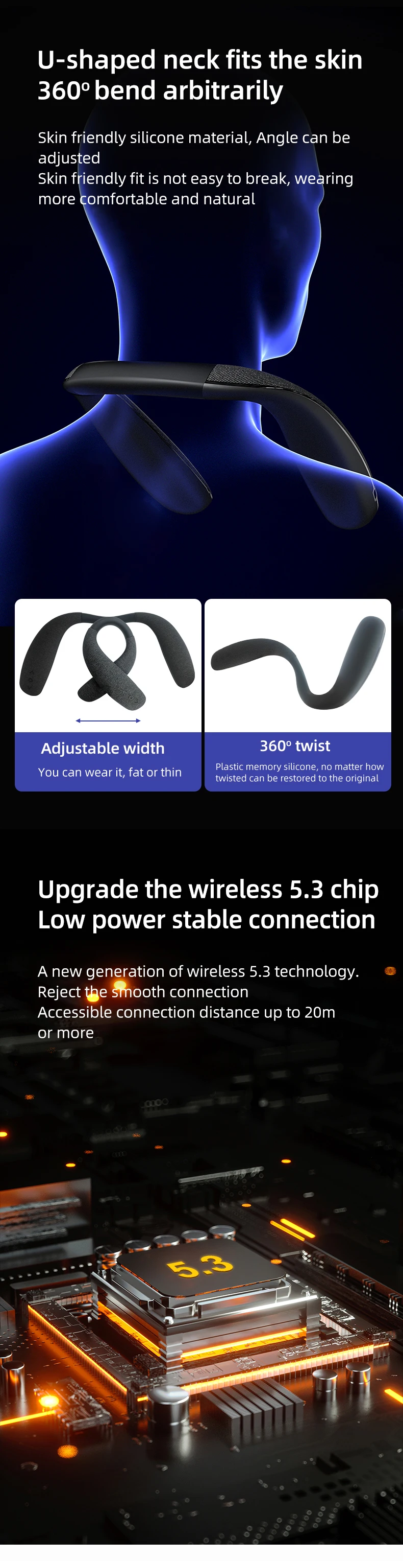 Neckband Bluetooth Speakers Stereo Sound Box Hands-free Microphone