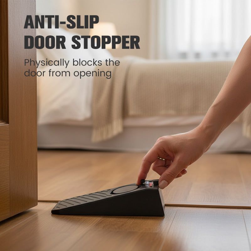 ENHANCED ANTI-SLIP BASE - Features an integrated high-friction silicone base that firmly grips the floor. This physically blocks the door from opening, providing a strong mechanical barrier against forced entry.