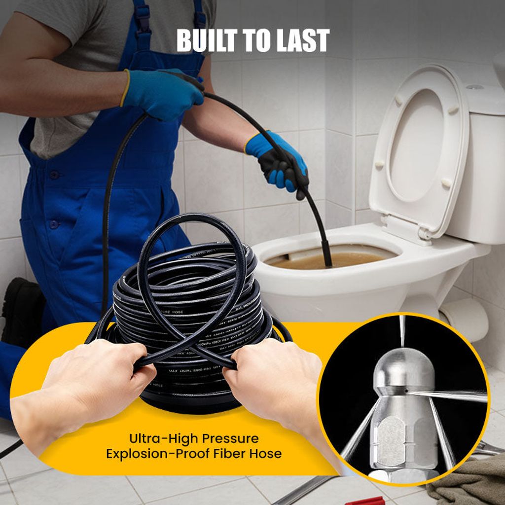 Rotating nozzle and reinforced hose for unclogging pipes 🛠️✨