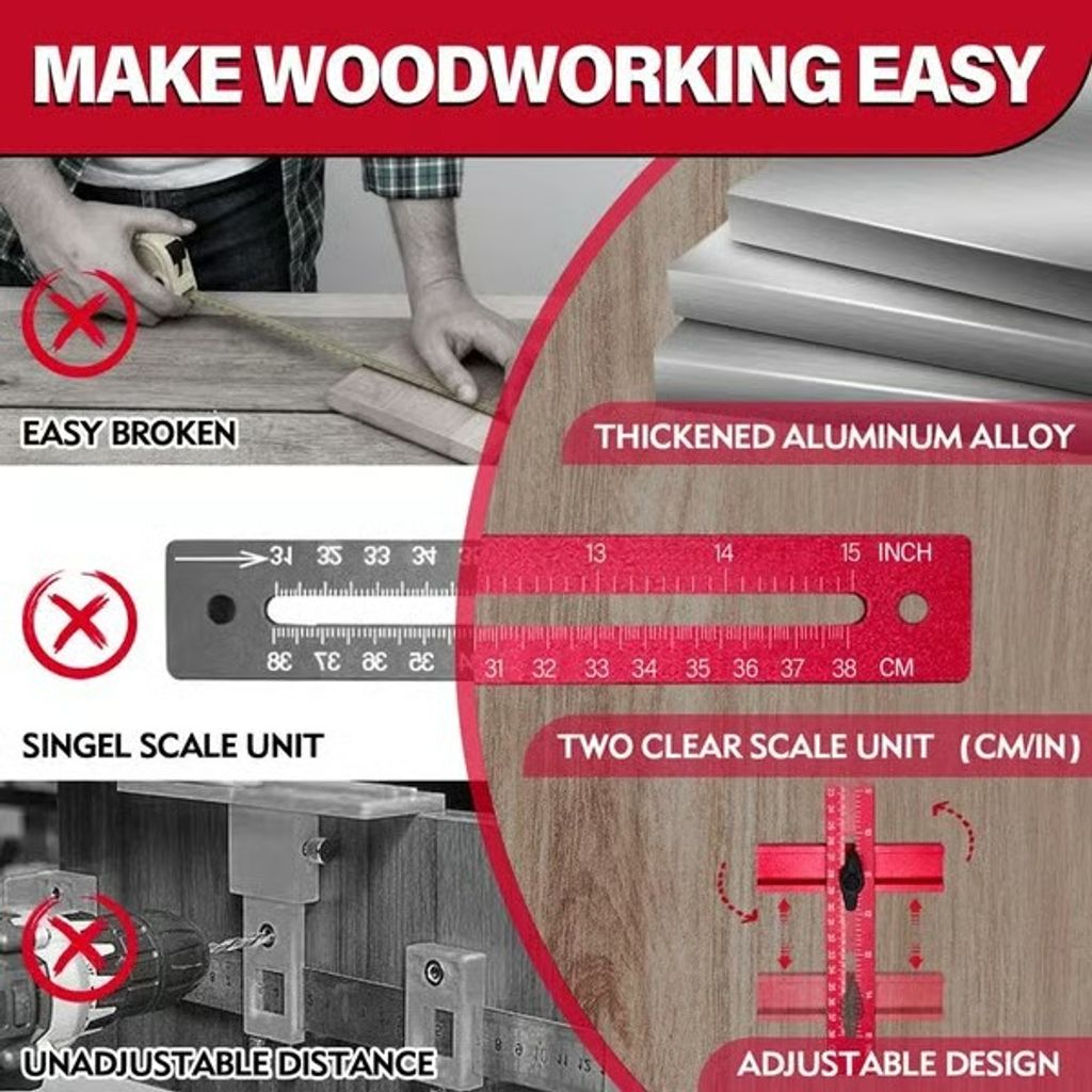 3. Stuck the ruler body in the groove of the guiding rule, and tighten the knob through the ruler body and the black positioning block at the bottom to secure.