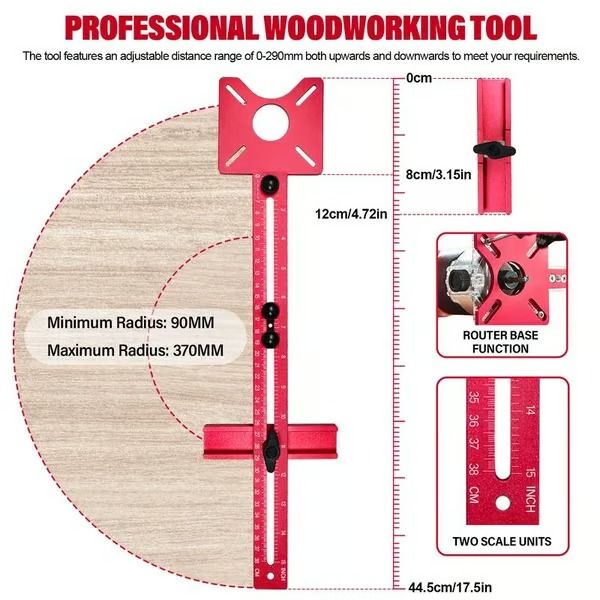 2. Determine the desired radius length, slide the nail hole in the middle of the radius slider to the scale, and tighten the knobs on both sides.