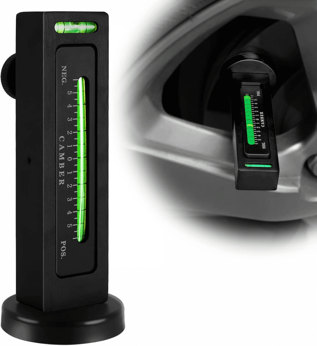 Professional Measurement: Camber caster alignment tool has a horizontal adjustment range from -5 to 5 degrees. The large adjustment knob facilitates zeroing the bubble when measuring caster angle.