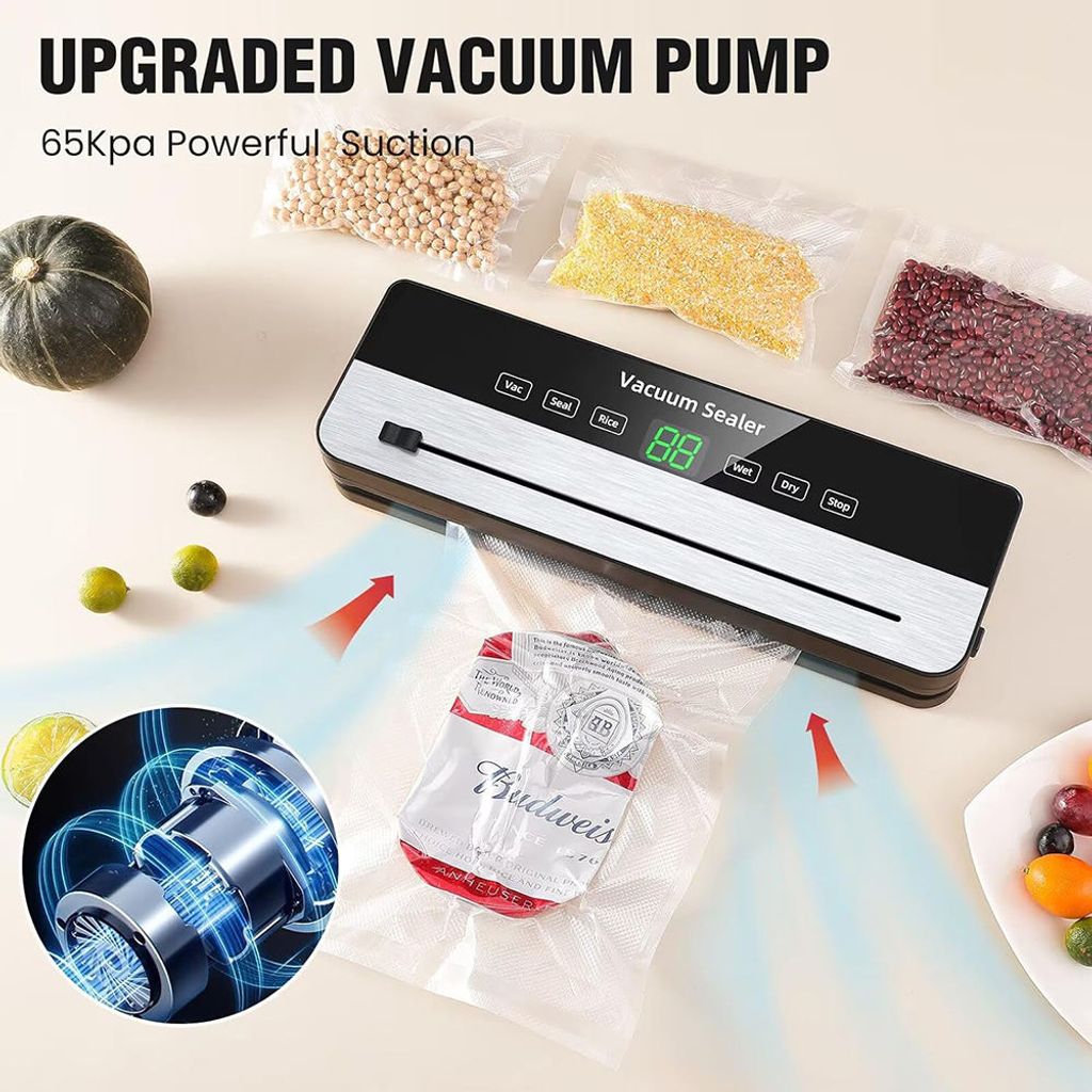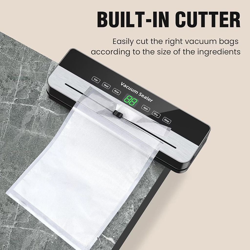 [Multifunctional]Our vacuum food sealer machine with build-in cutter,you can buy many roll bags and cut the right vacuum bags according to the size of the ingredients.External vac design for extract air from jars or wine preservation,reduce the rate of food oxidation.Keep food a great flavor and texture.
