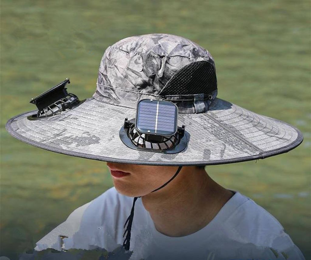 Wide Brim Solar Fan Outdoor Fishing Hat-Solar & USB Charging