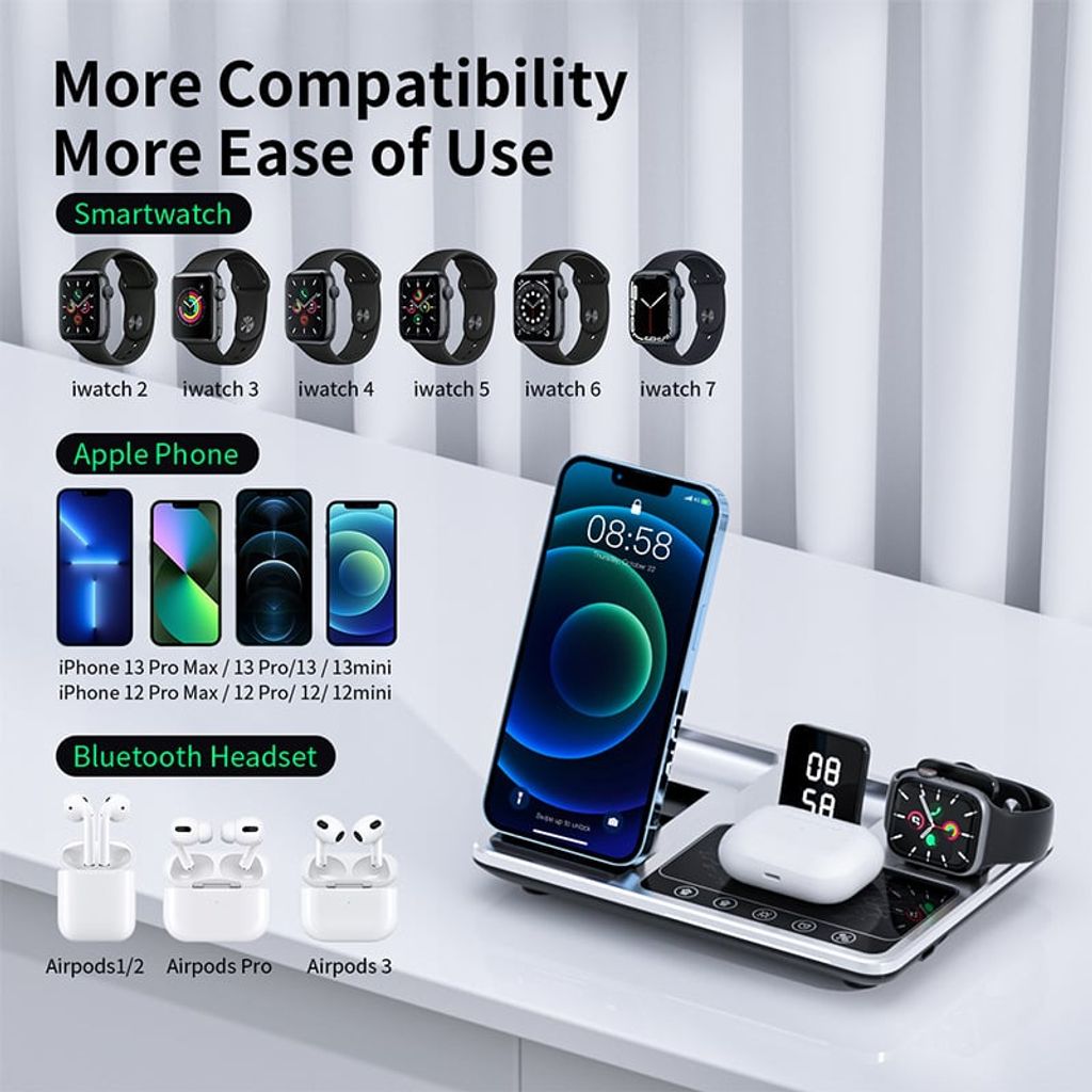 - Charges iPhone, Apple Watch, and AirPods simultaneously in one touch.